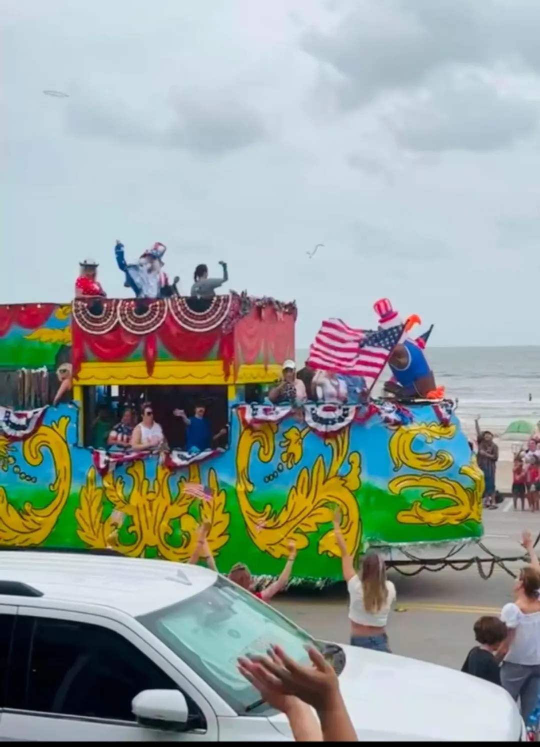 As we left, a small parade crossed our path—complete with floats, marching bands, kids on decorated bikes, and costumed performers tossing candy into the cheering crowd.